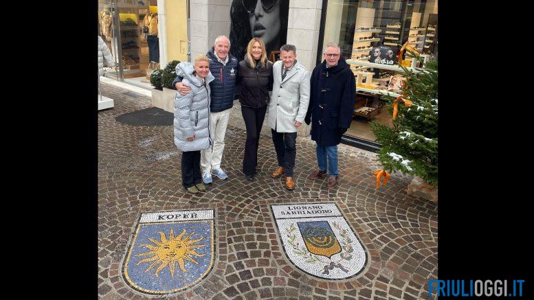 Realizzato in mosaico, con la collaborazione della Scuola Mosaicisti di Spilimbergo, lo stemma si trova accanto a quello della città di Capodistria anch’essa gemellata con Klagenfurt ed è stato inaugurato nel corso di una simbolica cerimonia alla quale hanno presenziato il sindaco di Lignano Sabbiadoro, Laura Giorgi accompagnata dal Consigliere delegato al turismo, Massimo Brini, Christian Scheider e Alois Dolinar, Sindaco e Vicesindaco di Klagenfurt.
