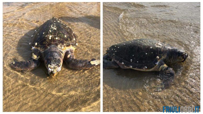Una tartaruga caretta caretta di notevoli dimensioni è stata trovata nella mattinata di oggi, giovedì 29 giugno, sul litorale della spiaggia a Lignano Sabbiadoro.