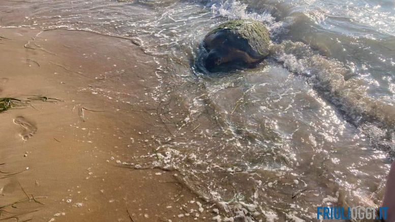 Lignano, arenato sulla spiaggia un carapace di grosse dimensioni.