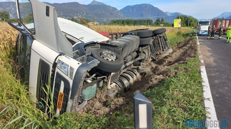 Incidente a Majano, camion si ribalta.