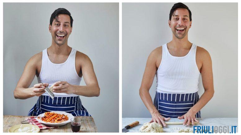 Angelo accompagna i suoi piatti, siano questi classici della tradizione italiana che sue personali rivisitazioni, con un motto che è diventato ormai leggendario – Mamma Mia! – e il lancio di un bacio: perché il cibo, secondo Angelo, ha una sola definizione: è super sexy! La sua passione per la cucina è nata praticamente con lui: “Sin da piccolo aiutavo la mamma e la nonna a cucinare, mi piaceva molto ed era un’ottima scusa per distrarmi dai compiti – racconta Angelo -. Alle superiori la mia passione per la cucina è esplosa. Ho iniziato a guardare qualsiasi programma di cucina che passava in tv e a comprare qualsiasi magazine e ricettario che trovavo in edicola a Maniago (da Venier, in piazza, per essere esatti). Invitavo i miei compagni di classe ogni sabato sera a cena e ogni settimana realizzavo ricette diverse. Mi piaceva condividere quello che preparavo e soprattutto sperimentare ricette e preparazioni che non conoscevo”.
