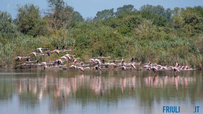 Uno spettacolo meraviglioso che non può non affascinare chi riesce ad assistervi: i fenicotteri rosa, infatti, sono arrivati assieme in volo alla riserva naturale regionale Valle Canal Novo a Marano, tingendola di rosa.