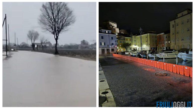 La notte è stata segnata anche da un significativo innalzamento del livello del mare. Alle 23:40 si è registrato un massimo di marea di circa 145 cm (ZMPS) a Grado e di circa 137 cm (ZMPS) a Trieste, secondo i dati ISPRA. A Trieste il mareometro ha raggiunto quota 274 cm sullo Zero dell’Istituto Talassografico (ZIT). A Muggia, i volontari hanno provveduto all’installazione delle paratie di protezione per difendere il centro storico dagli allagamenti.