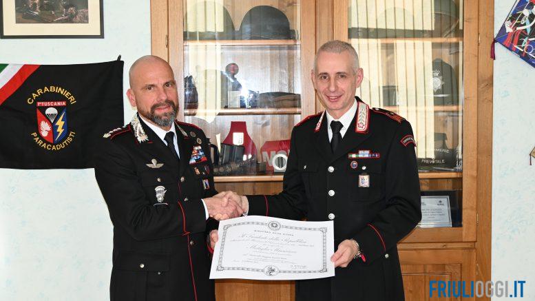 La medaglia Mauriziana al merito per i dieci lustri di carriera: il comandante provinciale dei carabinieri di Gorizia, colonnello Massimiliano Bolis, ha consegnato al luogotenente Mario Egidi, comandante della Stazione carabinieri di Monfalcone, il diploma di concessione dell’onorificenza, unitamente alla lettera di compiacimento del ministro della Difesa Guido Crosetto.
