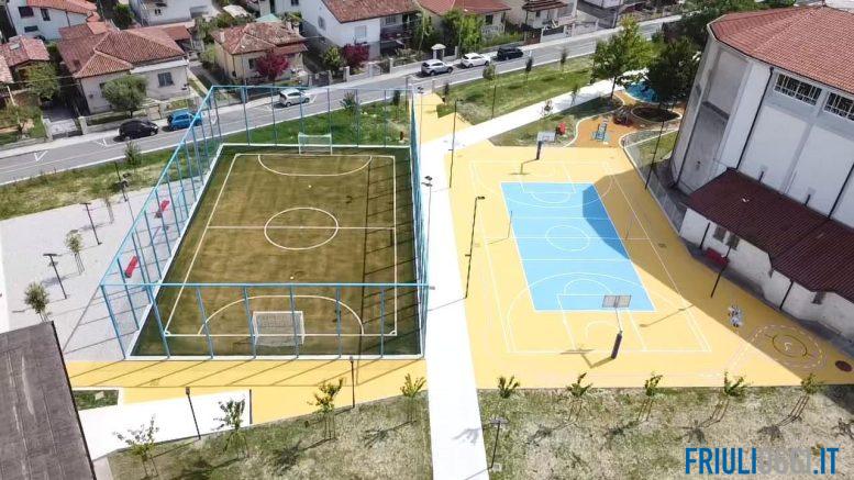 L’area è dotata di un campo da calcio a cinque in erba sintetica, di un campo polifunzionale per basket e pallavolo, di uno spazio per la didattica all’aperto e di una zona giochi con pavimentazione antitrauma. Completano l’opera i locali di servizio e un’area pensata per l’attività associativa. Il progetto ha dedicato grande attenzione anche alla componente ambientale, con la messa a dimora di numerose alberature che contribuiranno alla mitigazione acustica e visiva, alla creazione di zone d’ombra e a migliorare il comfort climatico dell’intera area. L’accessibilità è garantita dai diversi ingressi: dal parcheggio della chiesa, da via Natisone e direttamente dal plesso scolastico Cuzzi, in un percorso protetto che collega la scuola alla palestra.