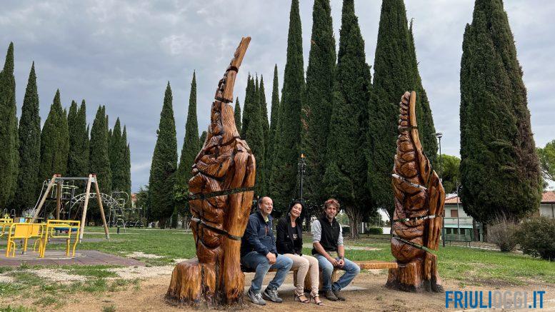 “Dalla distruzione alla rinascita – ha dichiarato il sindaco Cisint – . Ovviamente, non avremmo mai voluto vedere i nostri cipressi bruciati, ma abbiamo voluto recuperare ciò che si è salvato dall’incendio per creare qualcosa che rimanesse nel parco, a ricordare quanto accaduto e a testimoniare che anche da un avvenimento avverso si può dare nuova vita a qualcosa che sia piacevole e utile per la comunità. La scultura arricchisce il parco giochi, che abbiamo fortemente voluto per far incontrare e divertire i bambini, soprattutto dopo la pandemia che li ha costretti a restare chiusi in casa per lunghi periodi, e la presenza di queste grandi ali rappresenta un messaggio di libertà per loro”.