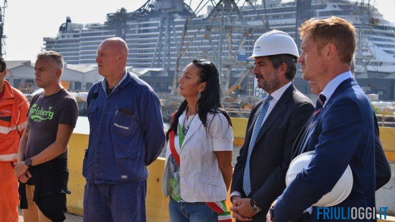 A rendere omaggio alle vittime il sindaco di Monfalcone Anna Maria Cisint, accompagnato dal direttore dello stabilimento di Monfalcone Cristiano Bazzara e dal Generale Claudio Graziano assieme alla rappresentazione di anmil Gorizia.