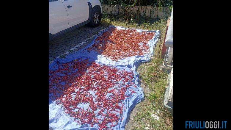 Nella mattinata di giovedì 7 settembre, una pattuglia del comando di polizia locale di Monfalcone, nell’ambito delle consuete attività di controllo del territorio, all’interno del parcheggio multipiano di via della Resistenza ha individuato una notevole quantità di peperoncini stesi su ad essiccare al sole, posizionati su due coperte.