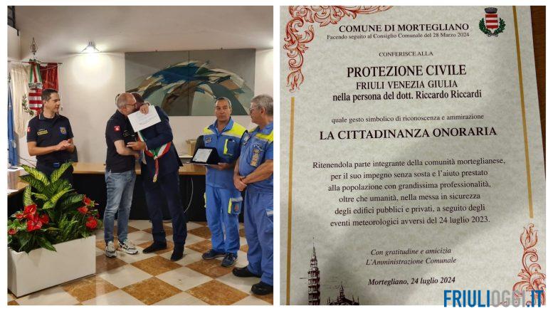 Mortegliano ringrazia la Protezione civile regionale con la cittadinanza onoraria per il soccorso prestato alla comunità a seguito della tragica grandinata del 24 luglio 2023.