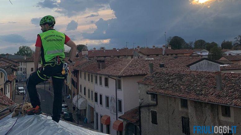 Le immagini del Soccorso Alpino sui tetti di Mortegliano distrutti dal maltempo.