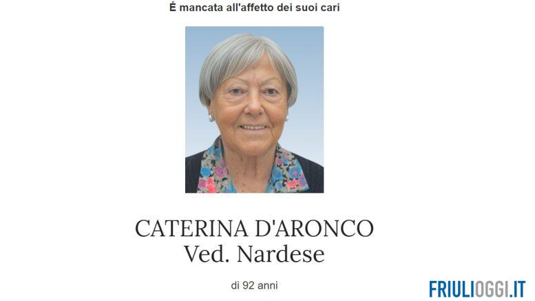 É mancata all’affetto dei suoi cari Caterina D’Aronco (ved. Nardese). Ne danno il triste annuncio le sorelle Franca e Lidia, i nipoti unitamente ai parenti tutti.