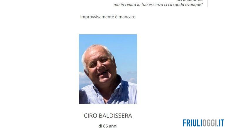 Improvvisamente è mancato all’età di 66 anni Ciro Baldissera. Ne danno il triste annuncio la moglie Lucia, le figlie Federica con Ivan, Pietro ed Emma e Stefania con Christian.