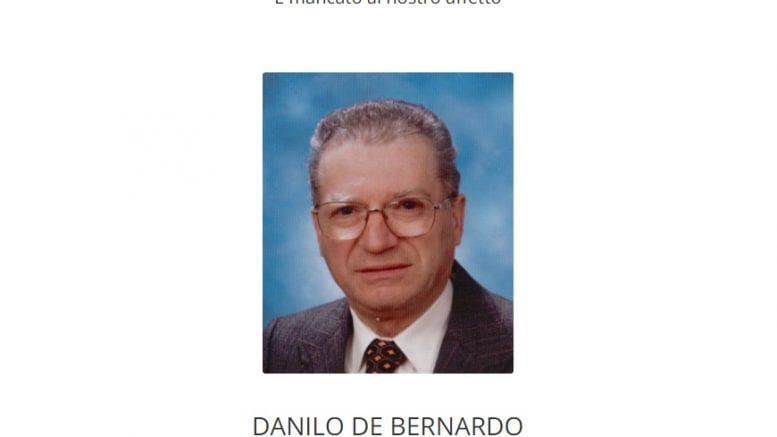 È mancato al nostro affetto all’età di 80 anni Danilo De Bernardo. Ne danno il triste annuncio Lucilla, Riccardo, Adriana, Daniela, Stefano, Marco, Luca, Elda, Giuliana, Lorenzo, parenti e amici tutti.