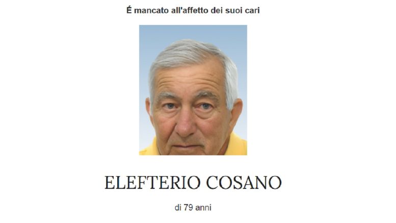 É mancato all’affetto dei suoi cari Elefterio Cosano. Addolorati ne danno il triste annuncio la moglie Rita, il figlio Vittorio assieme ad Elena, le adorate nipoti Sofia e Fedra unitamente ai parenti tutti.