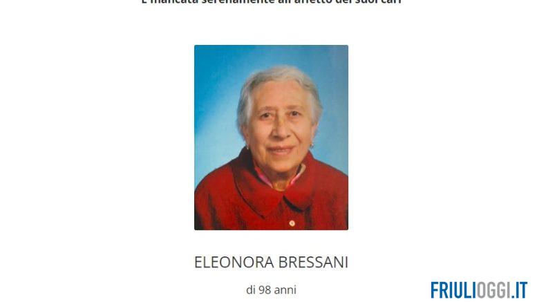 E’ mancata serenamente all’affetto dei suoi cari Eleonora Bressani. Ne danno il triste annuncio i nipoti, gli amici ed i parenti tutti.