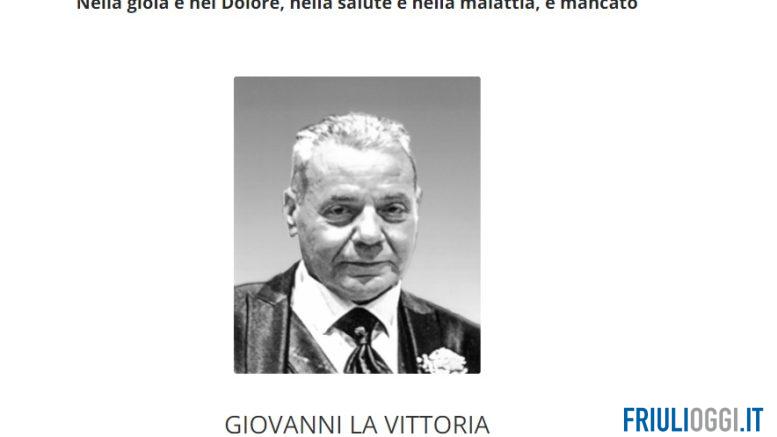 Nella gioia e nel dolore, nella salute e nella malattia, è mancato Giovanni La Vittoria. Lo annunciano con profondo dolore la moglie Luisa, l’adorata nuora Elisa ed i parenti tutti.