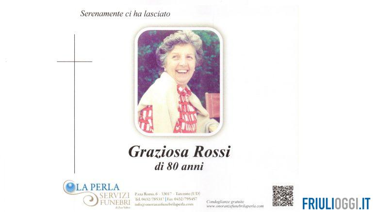 Serenamente ci ha lasciato Graziosa Rossi. Ne danno il triste annuncio il fratello Bruno, i nipoti ed i parenti tutti.
