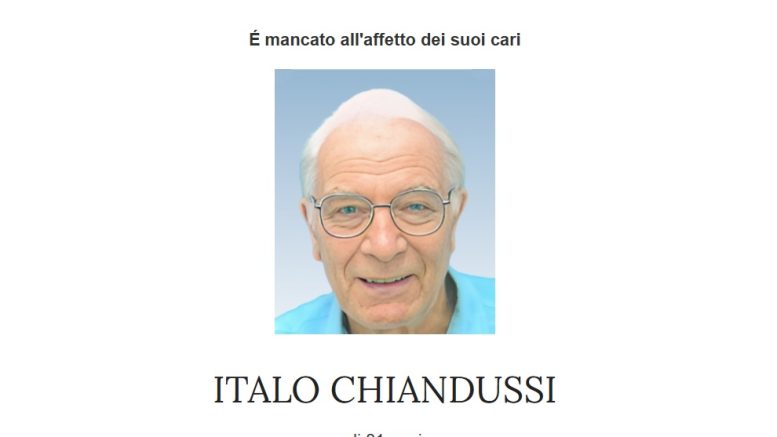É mancato all’affetto dei suoi cari Italo Chiandussi. Ne danno il triste annuncio la moglie Irene, la figlia Donatella con Alessandro, il figlio Alberto con Barbara unitamente ai parenti tutti.