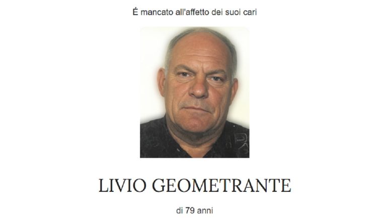 É mancato all’affetto dei suoi cari Livio Geometrante. Addolorati ne danno il triste annuncio la moglie Edda, la figlia Raffaella con il genero Leonardo, i nipoti Edoardo e Maria Vittoria unitamente ai parenti tutti.