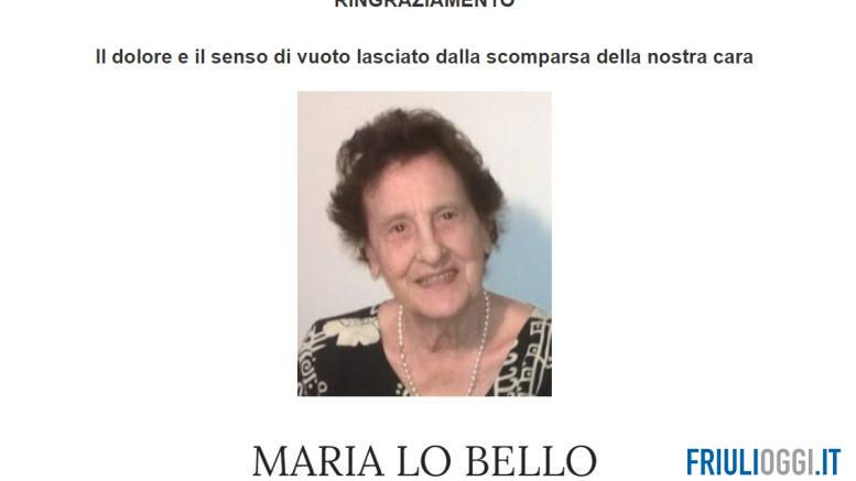 l dolore e il senso di vuoto lasciato dalla scomparsa della nostra cara Maria Lo Bello ha trovato conforto nella vostra vicinanza e nel vostro affetto.