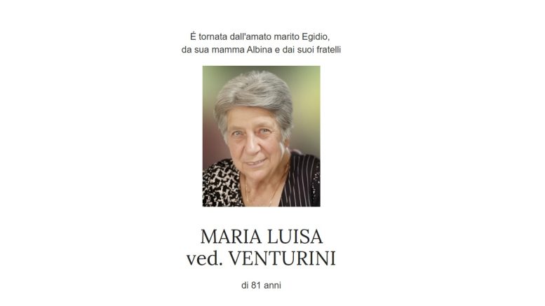 É tornata dall’amato marito Egidio, da sua mamma Albina e dai suoi fratelli Maria Luisa. Lo annunciano con profondo dolore i figli Stefano e Dario con Martina, assieme all’amata nipotina Alice che tanti sorrisi le ha regalato negli ultimi anni della sua vita.