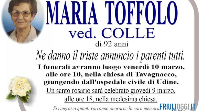 E’ mancata all’affetto dei suoi cari all’età di 92 anni Maria Toffolo. Ne danno il triste annuncio i parenti tutti.