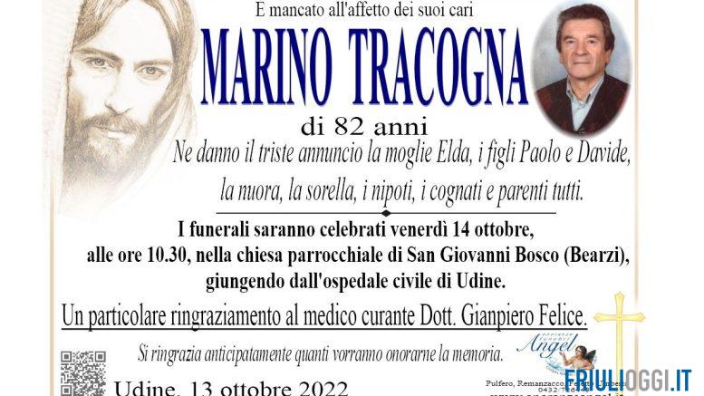E’ mancato all’affetto dei suoi cari all’età di 82 anni Marino Tracogna. Ne danno il triste annuncio la moglie Elda, i figli Paolo e Davide, la nuora, la sorella, i nipoti, i cognati e parenti tutti.