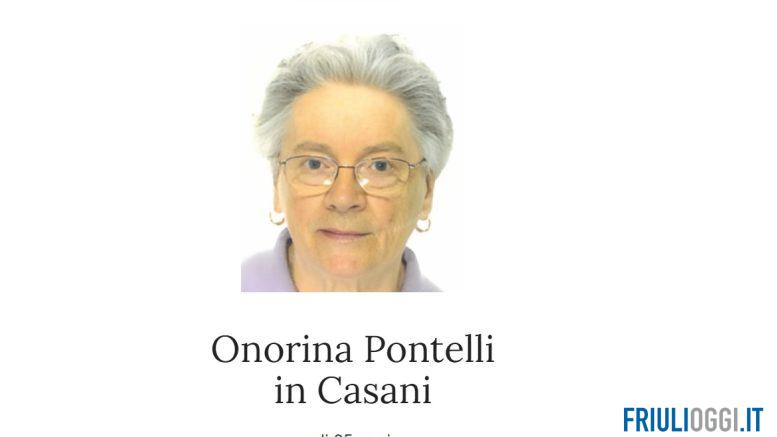 Ci ha lasciati all’età di 85 anni Onorina Pontelli. Ne danno il triste annuncio il marito Andrea, i figli Roberto con Silvana e Mario con Gloria. gli adorati nipoti Luca, Nausicaa, Debora unitamente ai parenti tutti.