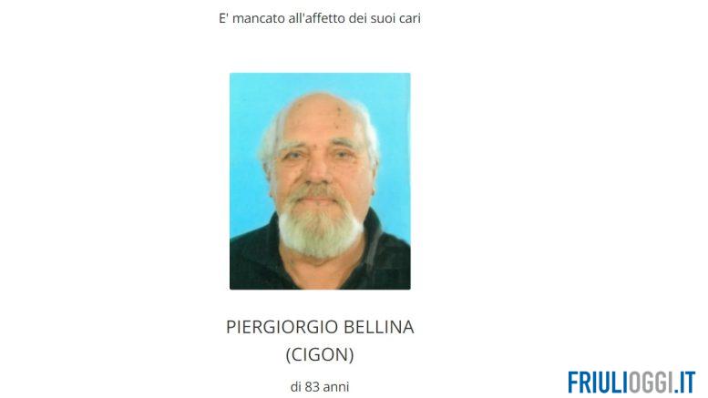 E’ mancato all’affetto dei suoi cari Piergiorgio Bellina (Cigon). Ne danno il triste annuncio la figlia Claudia, il nipote Luca, le sorelle ed i parenti tutti.