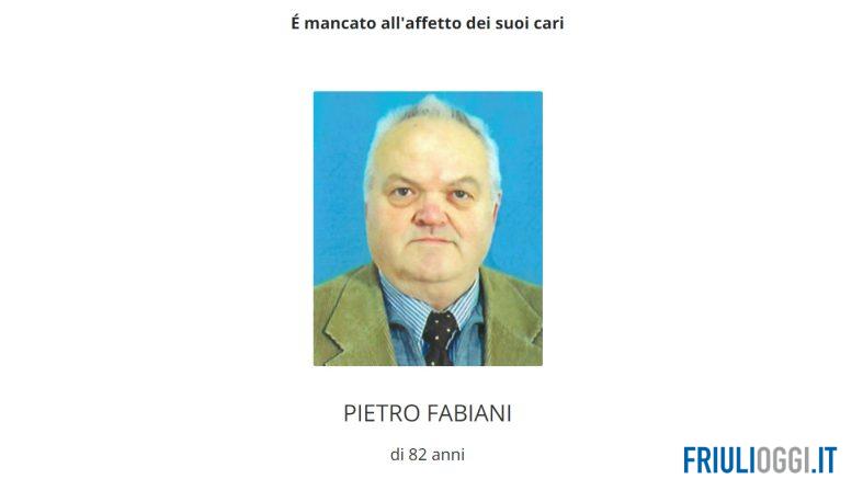 É mancato all’affetto dei suoi cari all’età di 82 anni Pietro Fabiani. Ne danno il triste annuncio la moglie, il figlio, la nuora, i nipoti unitamente ai parenti tutti.