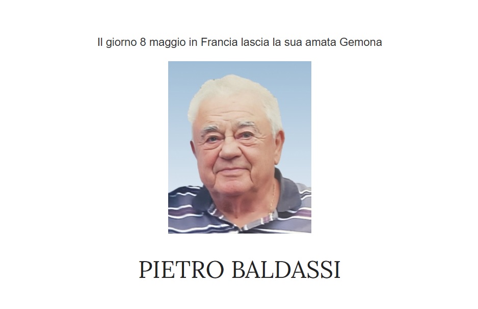 Il Rito delle Esequie avrà luogo a Gemona del Friuli nel Duomo di “S. Maria Assunta” lunedì 31 luglio alle ore 16 ove il caro Pietro sarà esposto dalle ore 15:45 giungendo dalla Casa Funeraria GIULIANO