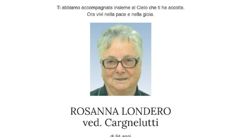 Il Rito delle Esequie avrà luogo a Gemona del Friuli nel Duomo di ” Santa Maria assunta “ venerdì 10 ottobre alle ore 15:30 ove la cara Rosanna sarà presente dalle ore 15:15 giungendo dalla Casa Funeraria GIULIANO di via Battiferro, 15 a Gemona del Friuli.