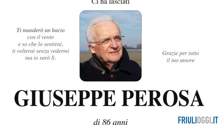 Ci ha lasciati all’età di 86 anni Giuseppe Perosa. Ne danno l’annuncio la moglie Liliana, le figlie Antonella, Alessandra e Anna con Michele, il fratello Gianfranco, l’adorata nipote Giulia e i parenti tutti.