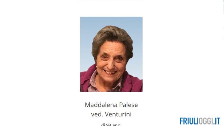 Ci ha lasciati all’età di 94 anni Maddalena Palese. Lo annunciano i figli Francesca con Dino, Giacomino con Silvana, i nipoti Giovanni con Linda, Elisa con Marco, i pronipoti Alice, Mattia e Mario unitamente ai parenti tutti.