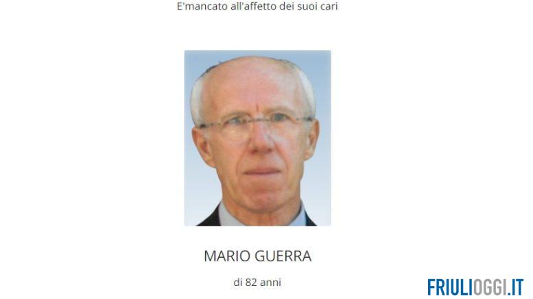 E’ mancato all’affetto dei suoi cari Mario Guerra. Ne danno il triste annuncio la moglie Franca, i figli Roberto con Lara, Luca con Alessia, l’adorato nipotino Giacomo, il fratello Luciano con Giuliana unitamente ai parenti tutti.
