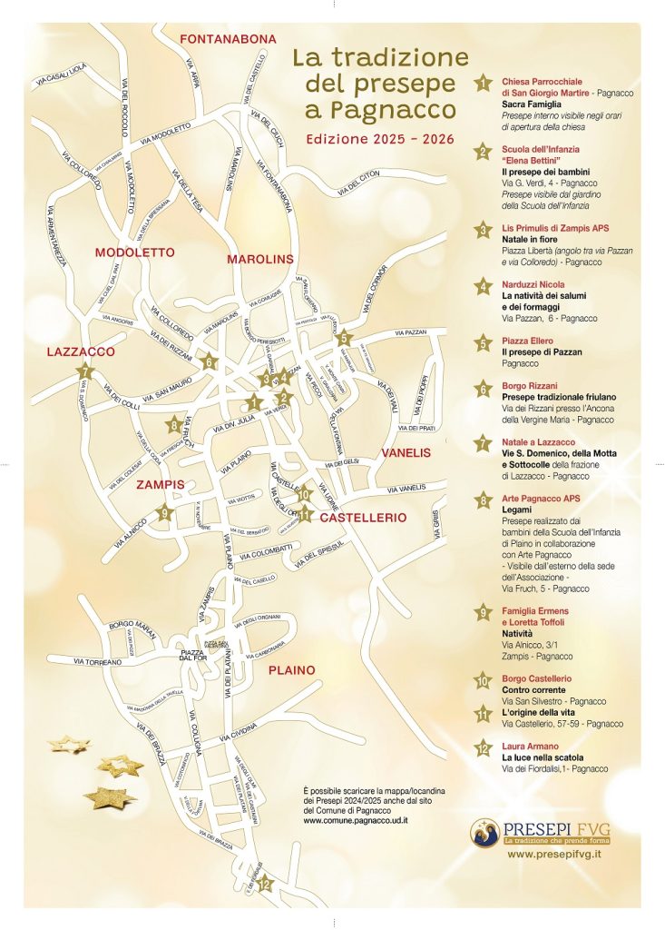 Le iniziative sono aperte a tutti – famiglie, bambini e adulti – e rappresentano un invito a vivere il territorio di Pagnacco in modo semplice e autentico, prolungando l’atmosfera delle feste attraverso la tradizione del Presepe, il cammino condiviso e la musica.
