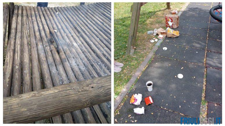 Dopo i raid a Tricesimo, i vandali hanno colpito un altro parco: quello di Pagnacco. Qualcuno infatti ha lasciato rifiuti tra i tavoli e la panchine dell’area pubblica e ha tentato di incendiare uno dei giochi di legno presenti.