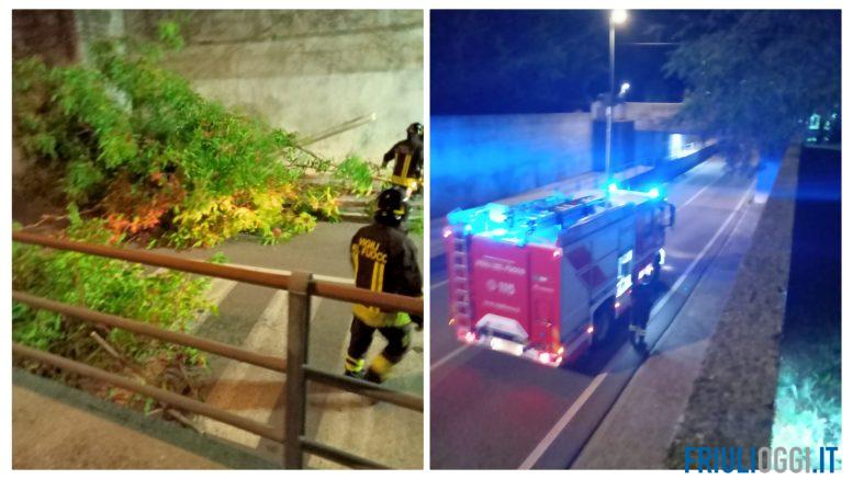 Dalle 23 fino a mezzanotte circa infatti, i vigili del fuoco di Latisana hanno dovuto rimuovere tutti gli alberi che sono andati ad appoggiarsi al muro di contenimento del passaggio ferroviario, rendendo cosi estremamente pericoloso sia il passaggio in strada da parte dei mezzi, sia il passaggio delle biciclette sulla pista ciclabile adiacente. Una volta conclusa l’operazione, la strada è stata riaperta normalmente alla viabilità.