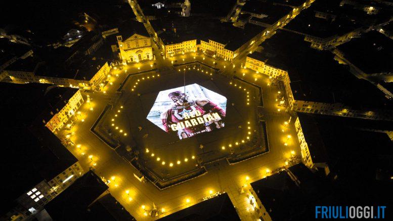 L’asterisco simbolo del film e i sei nuovi personaggi protagonisti del lungometraggio Marvel Studios sono apparsi nella grande piazza esagonale della città grazie a un’imponente struttura illuminotecnica. Un effetto scenografico che ha saputo coniugare il fascino di una delle perle dell’architettura italiana con l’innovazione tecnologica, rendendo omaggio alla ricchezza visiva e all’iconografia simbolica Marvel.
