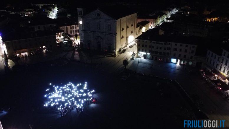 Ieri sera, durante la Cena per l’Unesco, in Piazza Grande a Palmanova, oltre 600 cittadini, partecipanti alla serata, muniti di torce elettriche e luci, hanno composto una stella di luce. Un flash mob, organizzato dal Comune, per festeggiare 5 anni di Palmanova come Patrimonio dell’Umanità Unesco.