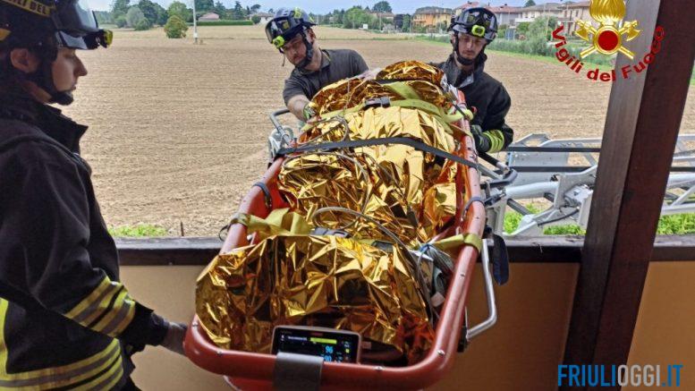 Ma vista l’impossibilità di trasportare la signora dalle scale interne dell’abitazione i vigili del fuoco, operando in sinergia con il personale sanitario, hanno adagiato la signora nella barella Toboga che poi, utilizzando l’autoscala, è stata calata fino al piano stradale dove è stata caricata sull’ambulanza per il trasporto all’ospedale.