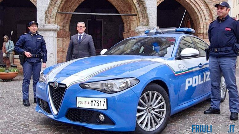 L’alfa Romeo Giulia alla Squadra Volante della Questura di Pordenone.