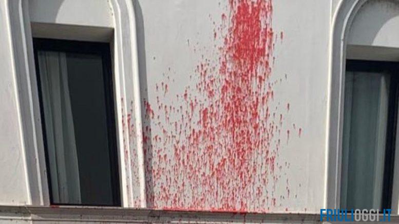 Imbrattata nella notte con della vernice rossa la sede di Confindustria Alto Adriatico e dell’emittente televisiva “Il 13” a Pordenone. Sull’edificio da giorni viene proiettata la Stella di David con i colori della bandiera israeliana in segno di solidarietà con la popolazione di Israele.