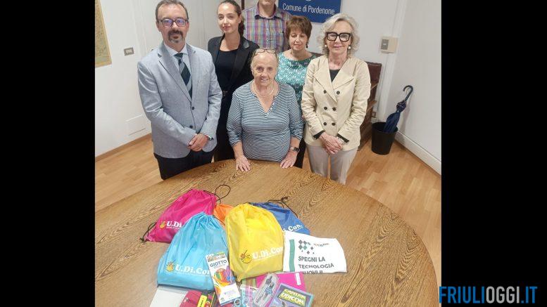 Nel kit trovano posto quaderni, colori, matite, squadre e compasso e altro materiale di cancelleria. Il tutto – come evidenziato dal presidente di Udicon Beppino Nosella, collocato all’interno di una sacca, molto comoda da utilizzare per le lezioni di ginnastica. Nel complesso, tra Pordenone, Sacile, Pasiano e San Vito al Tagliamento, Udicon ha provveduto a donare 180 kit che sono stati destinati ad altrettante famiglie in difficoltà.