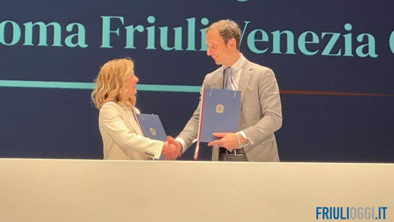 E’ stato il giorno di Giorgia Meloni in Friuli Venezia Giulia: la premier, infatti, è stata oggi pomeriggio a Pordenone per la firma dell’accordo di coesione tra il Governo e la nostra regione. Un’occasione, per il presidente del Consiglio di ricordare ed esaltare il “modello Friuli della ricostruzione”.