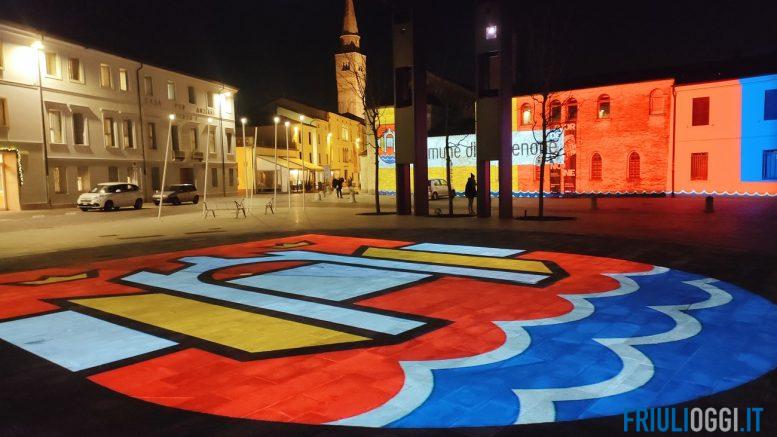 Le luci in piazza della Motta riprendono il tema ufficiale di candidatura di Pordenone a Capitale della Cultura 2027.