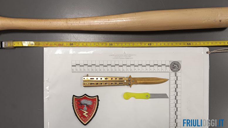 Nel borsello del giovane sono stati rinvenuti un coltello a serramanico lungo 22 centimetri e un taglierino. Successivamente, all’interno dell’automobile, una Volvo V40 di sua proprietà parcheggiata poco distante, è stata trovata anche una mazza da baseball lunga 62 centimetri, nascosta sotto il sedile del conducente e facilmente accessibile.