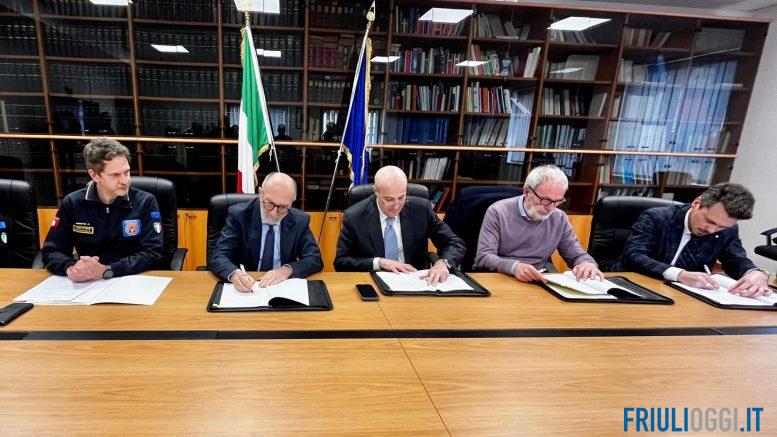 Il protocollo sperimentale per prevenire le piene del fiume Meschio è diventato operativo. La firma è avvenuta oggi presso la Prefettura di Pordenone, siglata dall’assessore regionale alla Protezione civile del Friuli Venezia Giulia, Riccardo Riccardi, insieme al sindaco di Caneva Dino Salatin, al responsabile dell’Area Nord-Est di Enel Green Power Fabio Coppiati e al prefetto Michele Lastella. L’accordo stabilisce le regole per la gestione delle paratoie durante le ondate di maltempo.