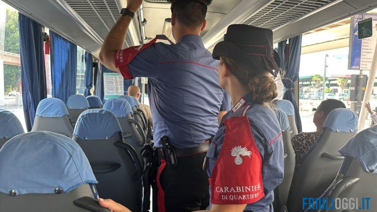 Sicurezza, i Carabinieri sugli autobus a Pordenone.