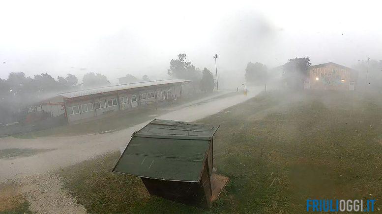 Maltempo in Fvg, una violenta tromba d’aria ha letteralmente spazzato via l’area festeggiamenti della Pro Loco di Pozzuolo.